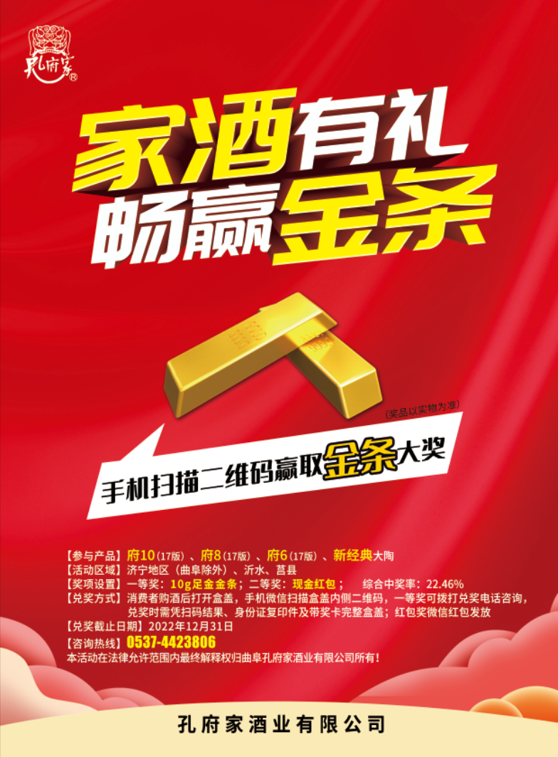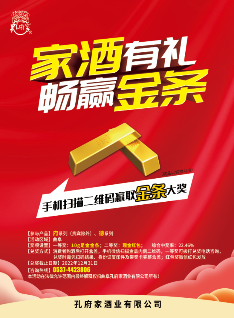 中秋大礼︱喝孔府家,赢10g足金金条带回家!